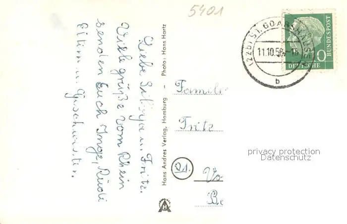 St_Goar Burg Rheinfels An der Loreley Burg Katz mit St Goarshausen Burg Maus mit Wellmich St_Goar postalisch gelaufen 1958 Erhaltung siehe scans [WerneD78] WernPID7