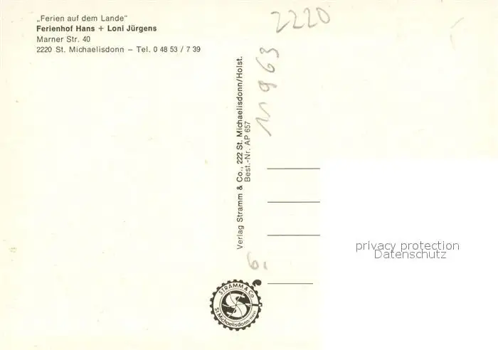 St_Michaelisdonn Ferienhof Hans und Loni Juergens Schimmel St_Michaelisdonn postalisch nicht gelaufen nach 1965 Erhaltung siehe scans [WerneD78] WernPID7