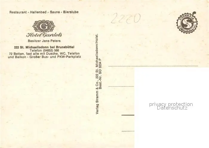 St_Michaelisdonn Hotel Gardels Rezeption Zimmer Gaststube Hallenbad St_Michaelisdonn postalisch nicht gelaufen nach 1965 Erhaltung siehe scans [WerneD78] WernPID7