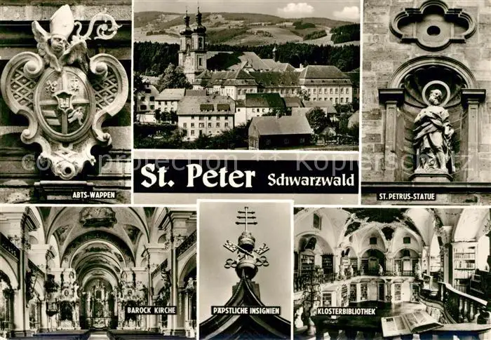 St_Peter_Schwarzwald Abts Wappen Kirche St Petrus Statue Barockkirche Paepstliche Insignien Klosterbibliothek St_Peter_Schwarzwald postalisch nicht gelaufen 1921-1965 Erhaltung siehe scans [WerneD78] WernPID7