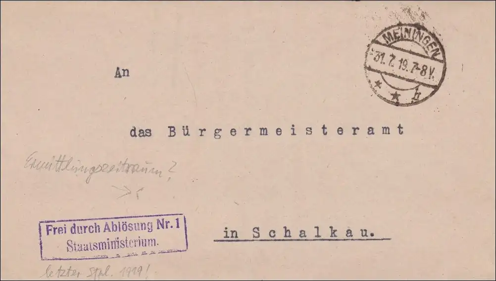 Ministère de l'Etat de Meiningen 1919 à Chalkau