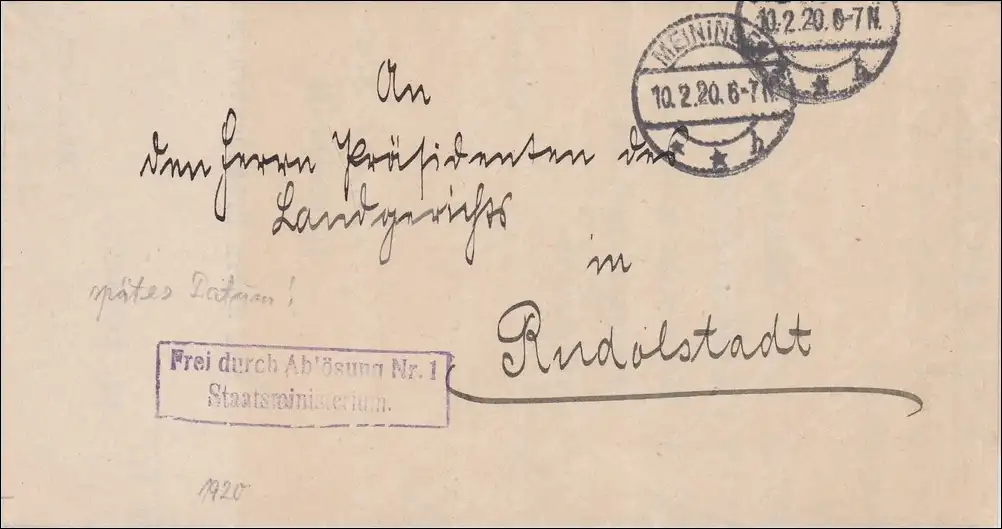 Ministère de l'Etat de Meiningen 1920 après Rudolstadt