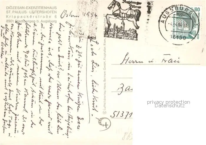 Stadtbergen Dioezesan Exerzitienhaus St Paulus Leitershofen Fliegeraufnahme Stadtbergen postalisch gelaufen 1994 Erhaltung siehe scans [WerneD78] WernPID7