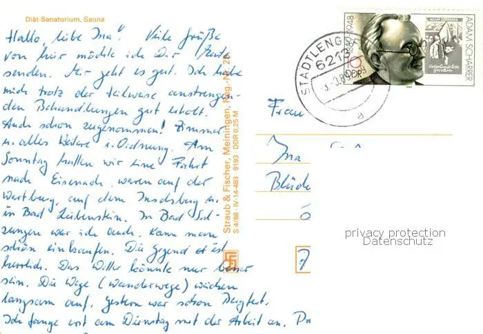Stadtlengsfeld Diaetsanatorium Details Stadtlengsfeld postalisch gelaufen 1989 Erhaltung siehe scans [WerneD78] WernPID7