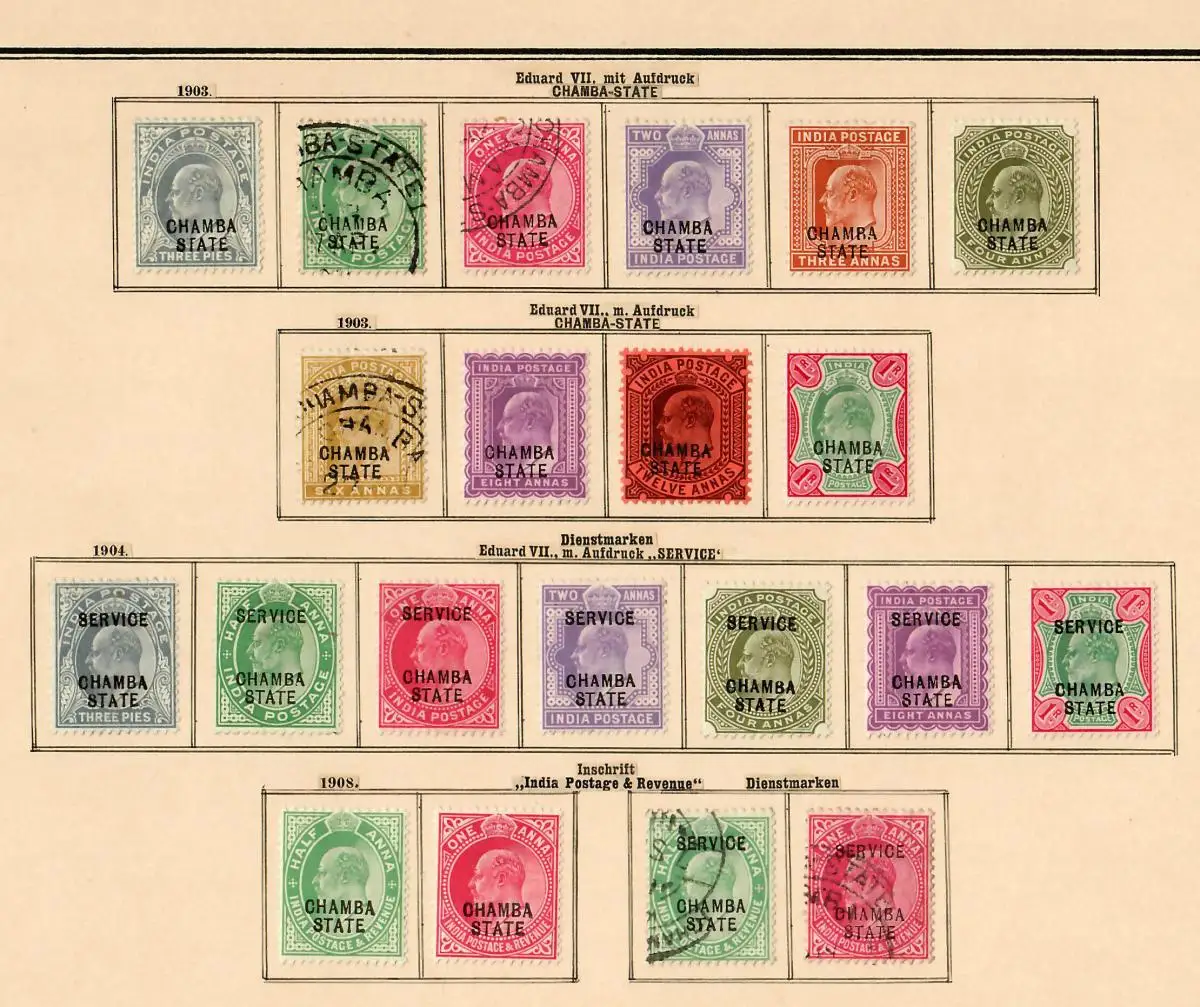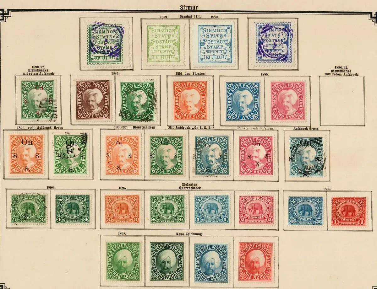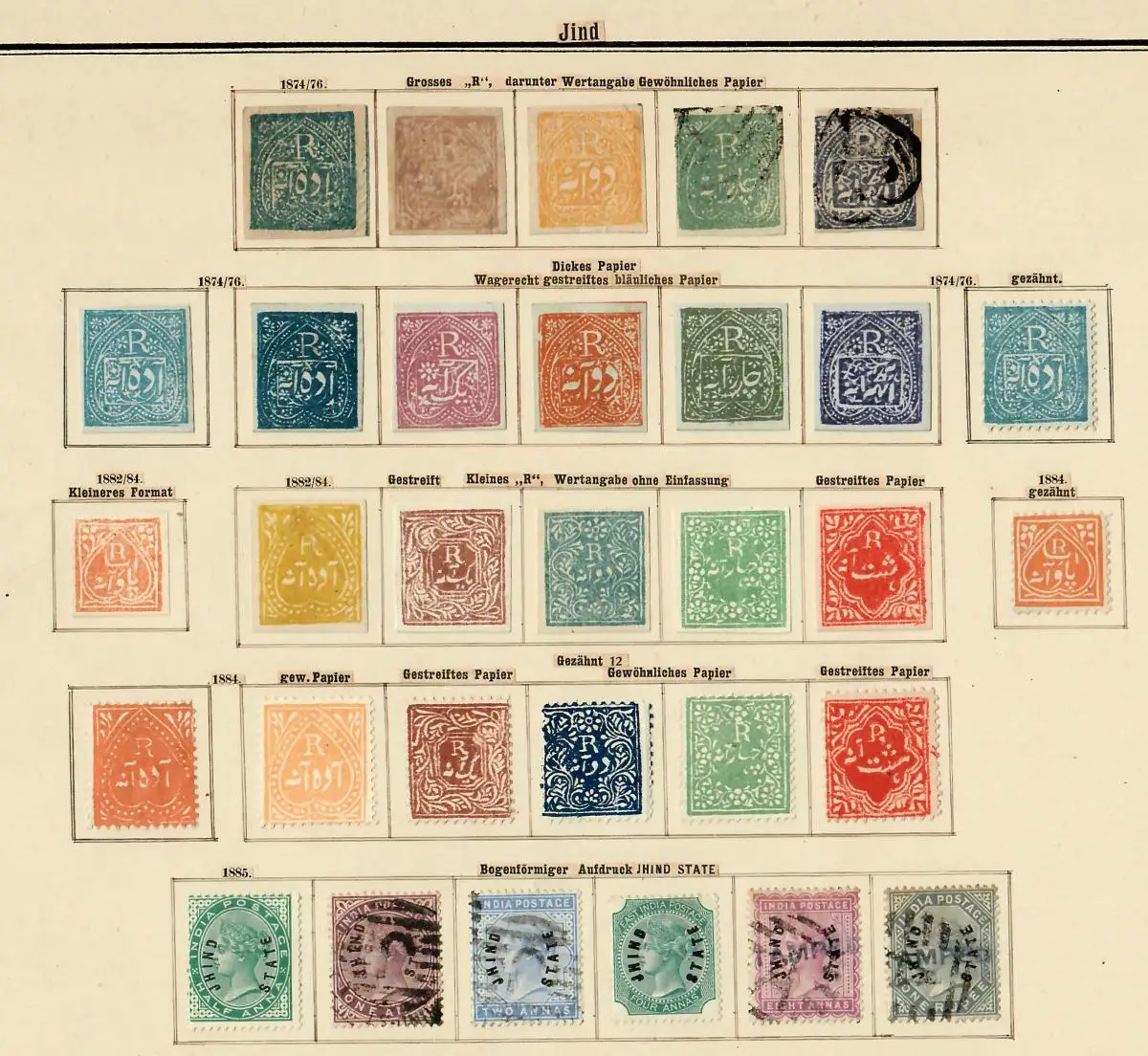 Voir Scan: collection on private designed sheets. chancelled and pendending Etats indiens, collection géante toujours jusqu'en 1909 avec de nombreuses raretés. Alwar, Bamra, bhopal, Bassaber,Bhor, Bundi, Chamba, Charkhari, Cochin, Datia, dhar, Faridkot, Gwalior, Haidarabad, Indore, Jaipur, Jalawar. Jind, Kaschmir, Las Bela et Kishengarh, Nabha, Naandgaon, Namanagar, Orcha, Patiala. Punch, Rajpipla, Saurath, Sirmur, Travancore, Wadhwan, o/* Numéro de l'article: 510034 Examen: original Numéro d'élément: 00000000510034