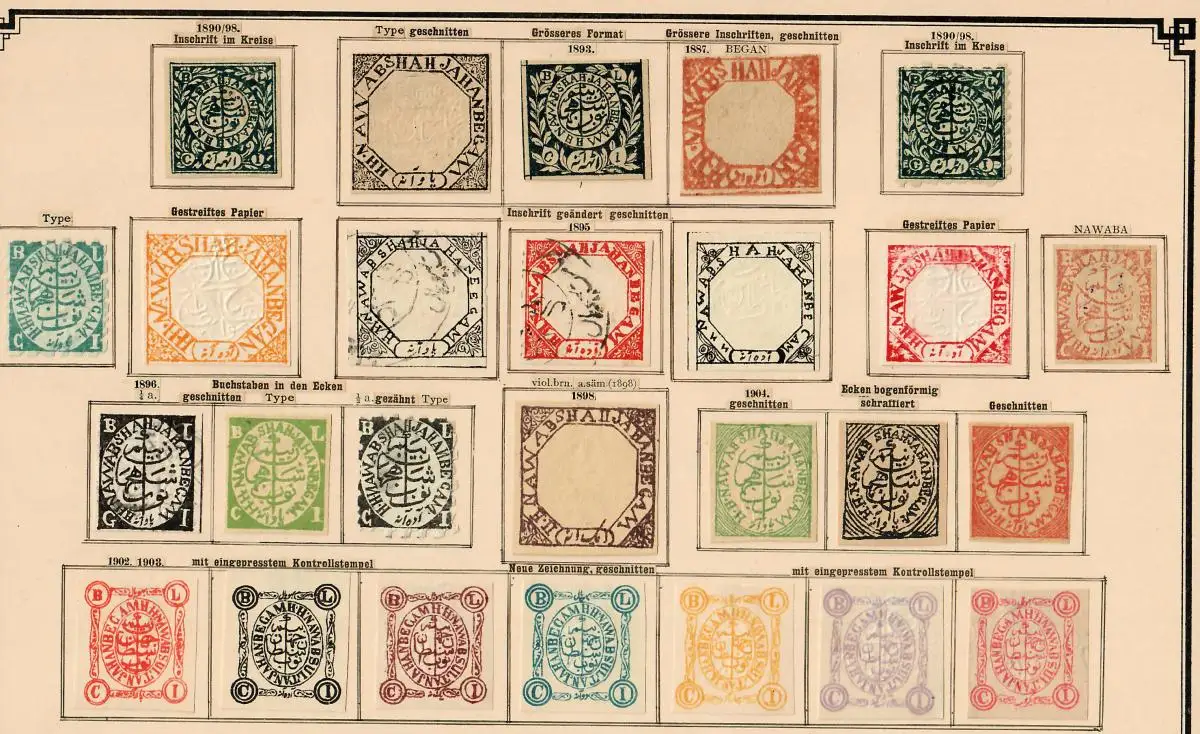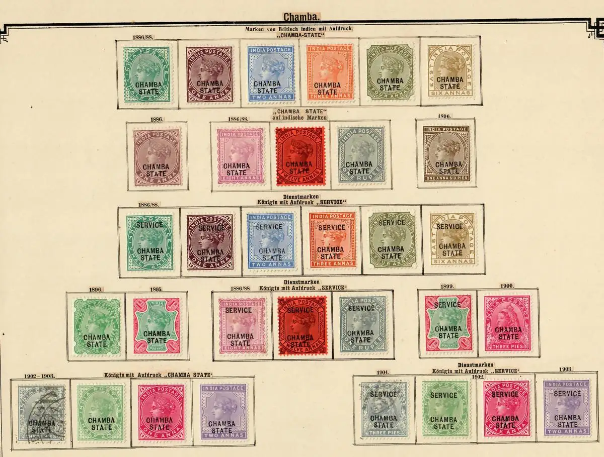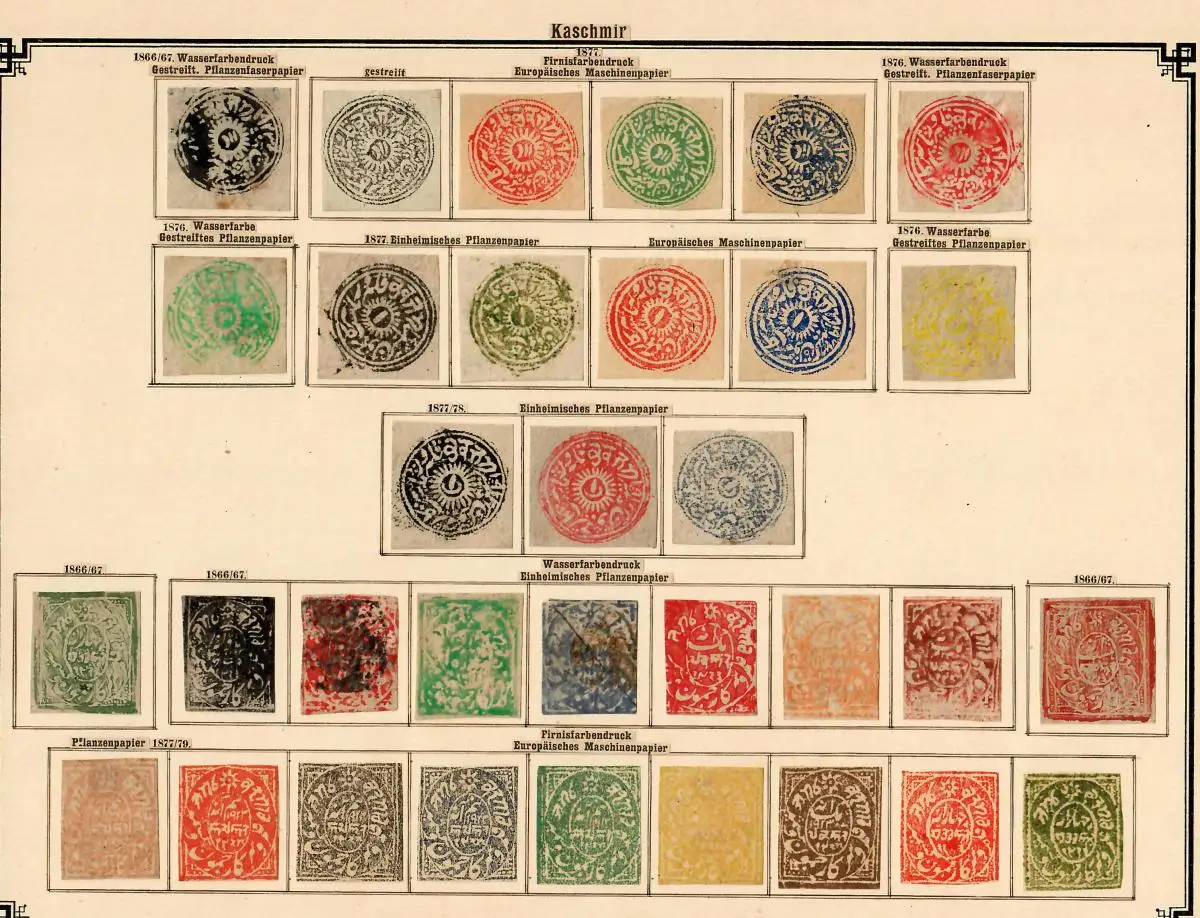 Voir Scan: collection on private designed sheets. chancelled and pendending Etats indiens, collection géante toujours jusqu'en 1909 avec de nombreuses raretés. Alwar, Bamra, bhopal, Bassaber,Bhor, Bundi, Chamba, Charkhari, Cochin, Datia, dhar, Faridkot, Gwalior, Haidarabad, Indore, Jaipur, Jalawar. Jind, Kaschmir, Las Bela et Kishengarh, Nabha, Naandgaon, Namanagar, Orcha, Patiala. Punch, Rajpipla, Saurath, Sirmur, Travancore, Wadhwan, o/* Numéro de l'article: 510034 Examen: original Numéro d'élément: 00000000510034