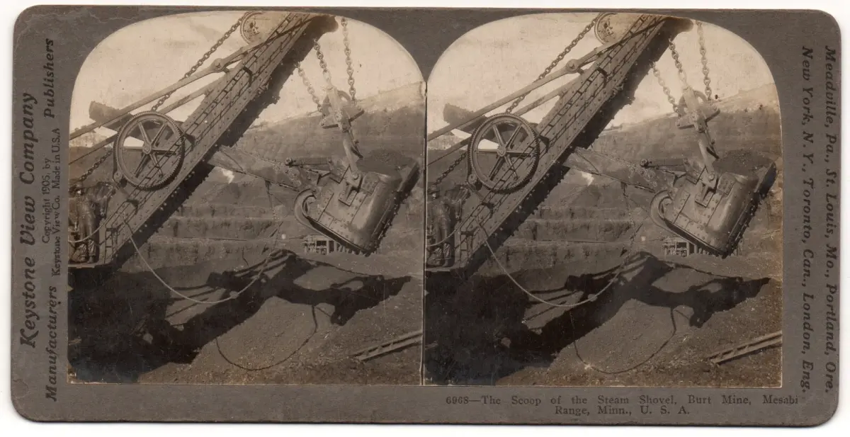 The team’s steam shovel, Burt Mine, Mesabi Range, Minnesota, USA.
