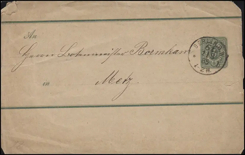 Bande rigide S 7A chiffre 3 pfennig BERLIN 1.8.85 vers Metz