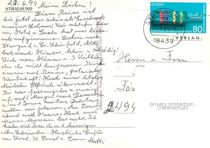 Stralsund_Mecklenburg_Vorpommern Fliegeraufnahme Stralsund_Mecklenburg postalisch gelaufen 1994 Erhaltung siehe scans [WerneD78] WernPID7