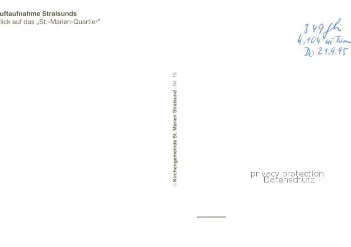 Stralsund_Mecklenburg_Vorpommern Fliegeraufnahme mit St Marien Quartier Stralsund_Mecklenburg postalisch nicht gelaufen 1995 Erhaltung siehe scans [WerneD78] WernPID7