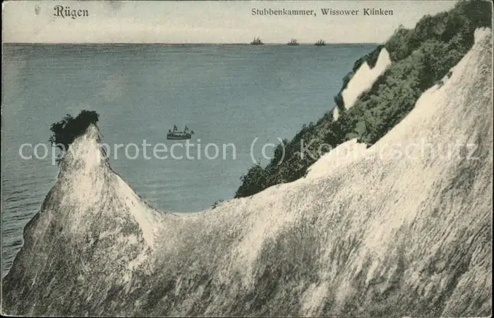 Stubbenkammer Ruegen Wissower Klinken Kreidefelsen Steilkueste Schiff Sassnitz postalisch gelaufen 1907 Erhaltung siehe scans Alte Ansichtskarte Postkarte hz Fhwoer