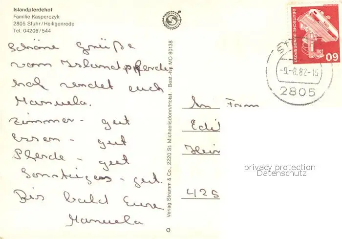 Stuhr Islandpferdehof Bettenlager Gastraum Reiter Stuhr postalisch gelaufen 1982 Erhaltung siehe scans [WerneD78] WernPID7