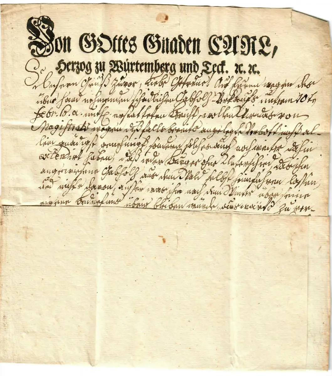 Stuttgart, 1783 Dukg zu Württemberg et Teck an Magistrat zu Leibstein