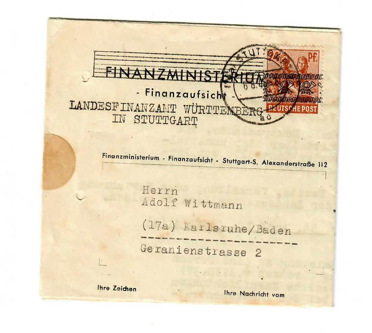Stuttgart 1948, Ministère des Finances après Karlsruhe.