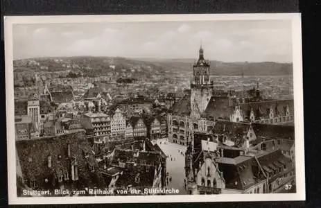 Stuttgart. Blick zum Rathaus von der Stiftskirche - Nicht gelaufen. (NPLZ 70000).