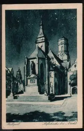 Stuttgart. Stiftskirche bei Nacht - Gelaufen 1927. (NPLZ 70000).