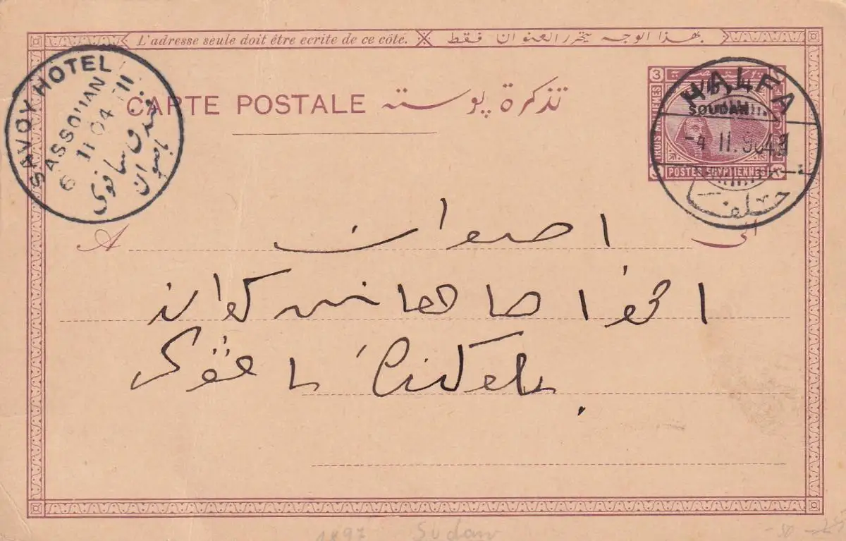 Sudan, post card Halfa, Savoy Hotel Assouan 1904