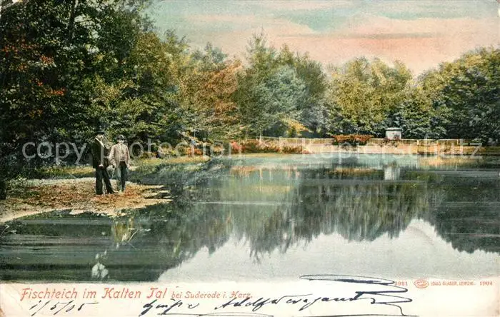 Suderode_Bad Fischteich im Kalten Tal Suderode_Bad postalisch gelaufen 1905 Bahnpost Erhaltung siehe scans [FriedD77] Bahnpost Frierer