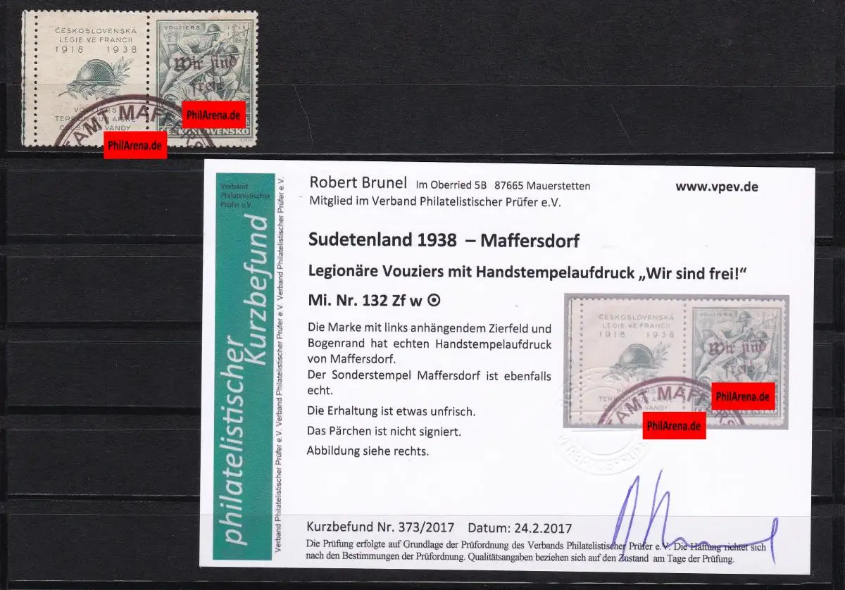 Sudetenland: Maffersdorf MiNr. 132 Zf w, cacheté