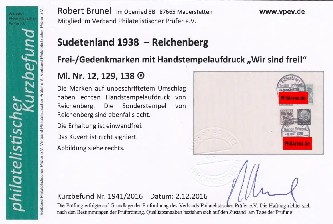 Sudetenland: Min. 12, 129, 138, stamped Reichenberg