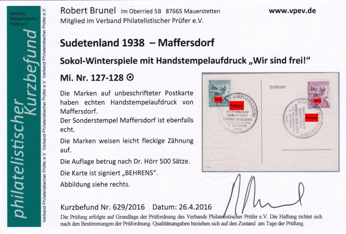 Sudètes: Mi Nr. 127-128, Sokol Jeux d'hiver