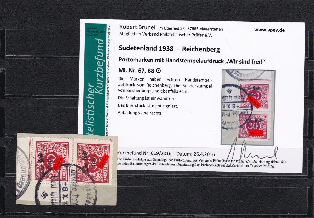 Sudetenland: Min. 67, 68, cachet, imprimé à la main Marques de journaux