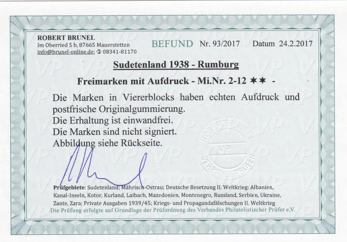 Sudetenland: Rumburg: Min° 2-12, **, Quaderblocks