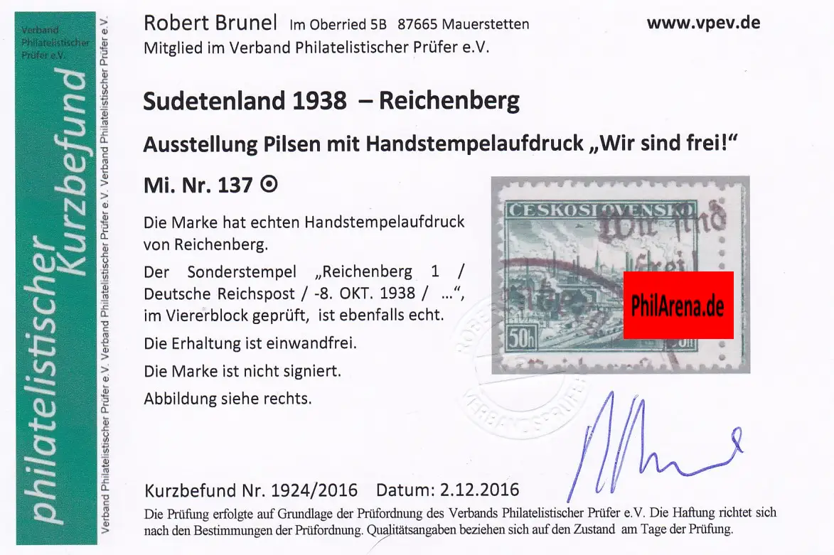 Sudètes: MiNr. 137, cacheté, Reichenberg 1