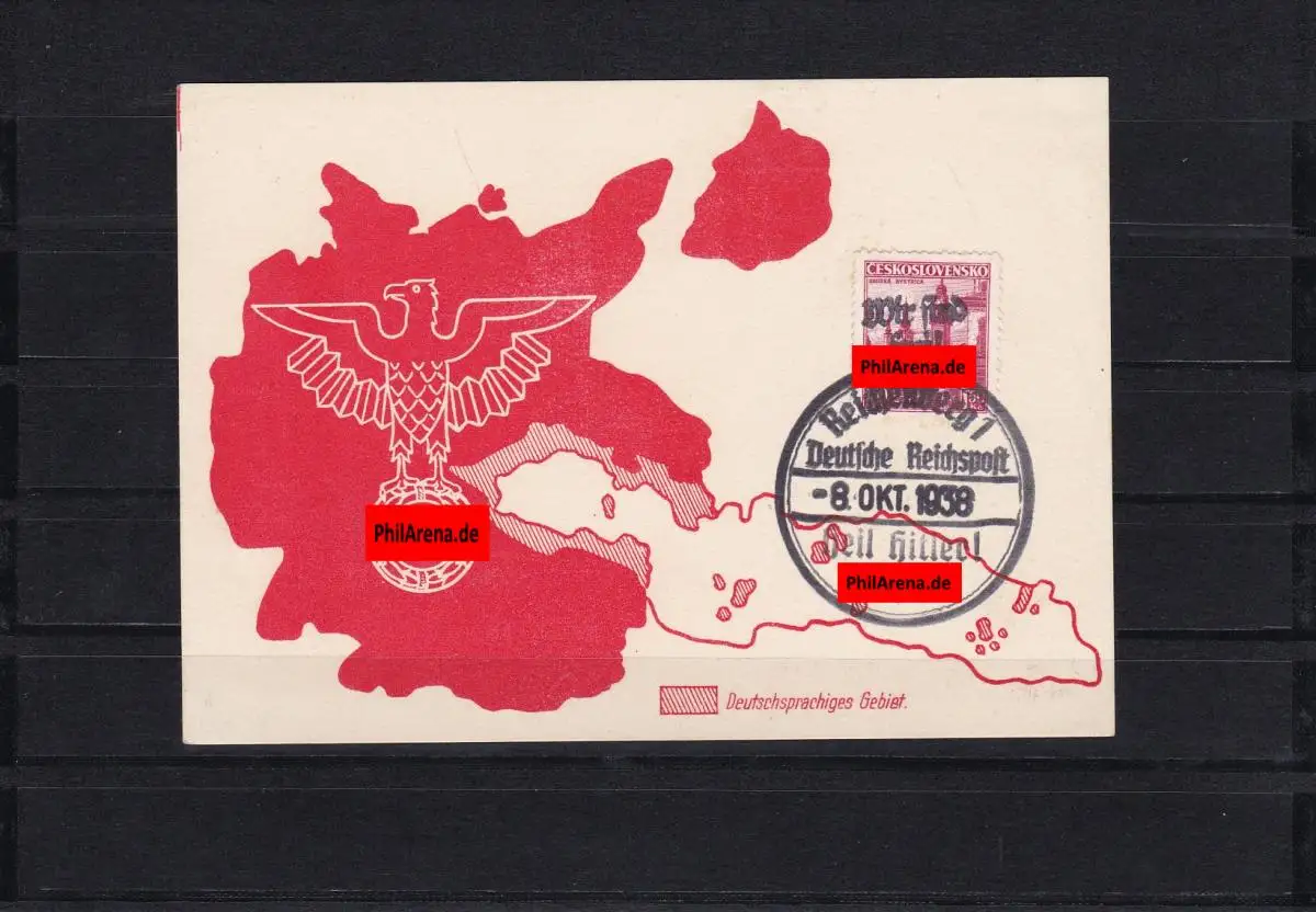 Sudètes: MiNr. 25 sur carte de propagande, timbre Reichenberg Nous sommes libres