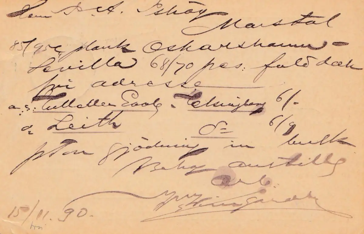 Suède: 1890: Affaire entière Helsingborg vers Marstal