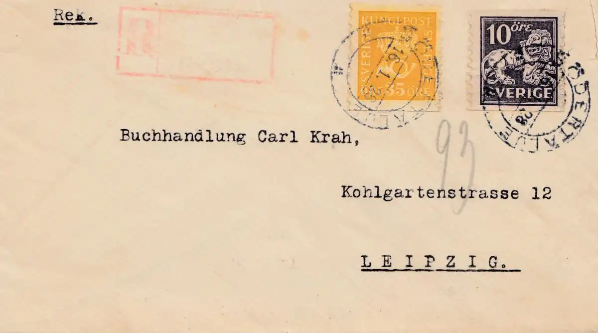 Suède: 1928: Södeftalje vers Leipzig, recommandé