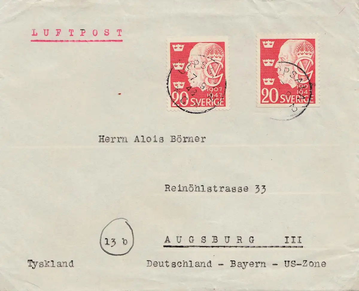 Suède: 1948: Aéroport Uppsala vers Augsbourg