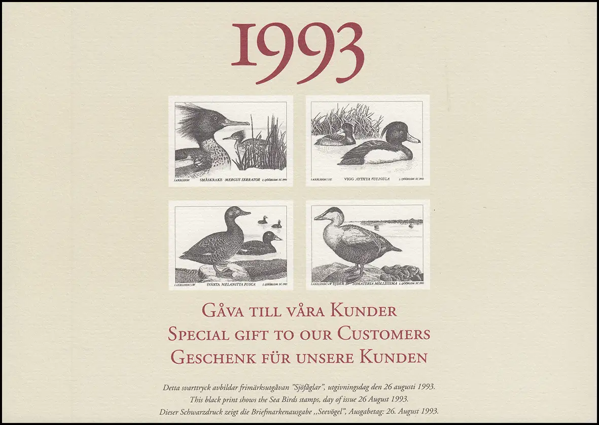 Suède Annulation PFA 1993: oiseaux de mer, phrase en noir / impression spéciale
