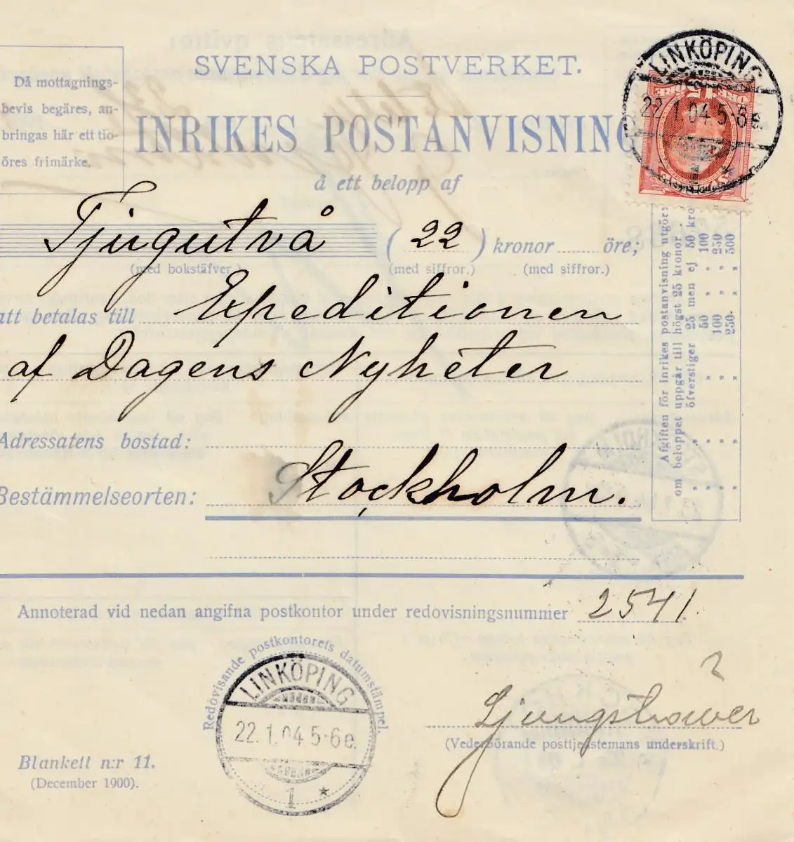 Suède: Carte de paquet 1904 Linköping vers Stockholm