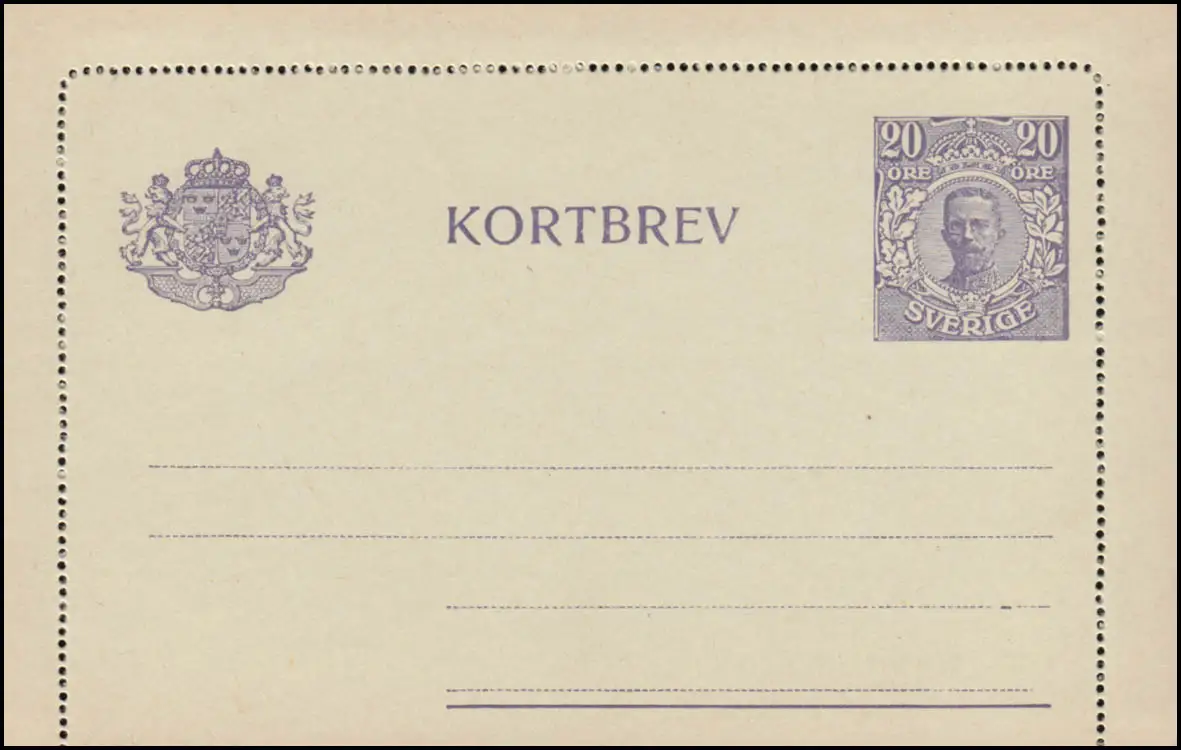 Suède Carte lettre K 20 KORTBREV Roi Gustav 20 Öre sans date d'impression, **