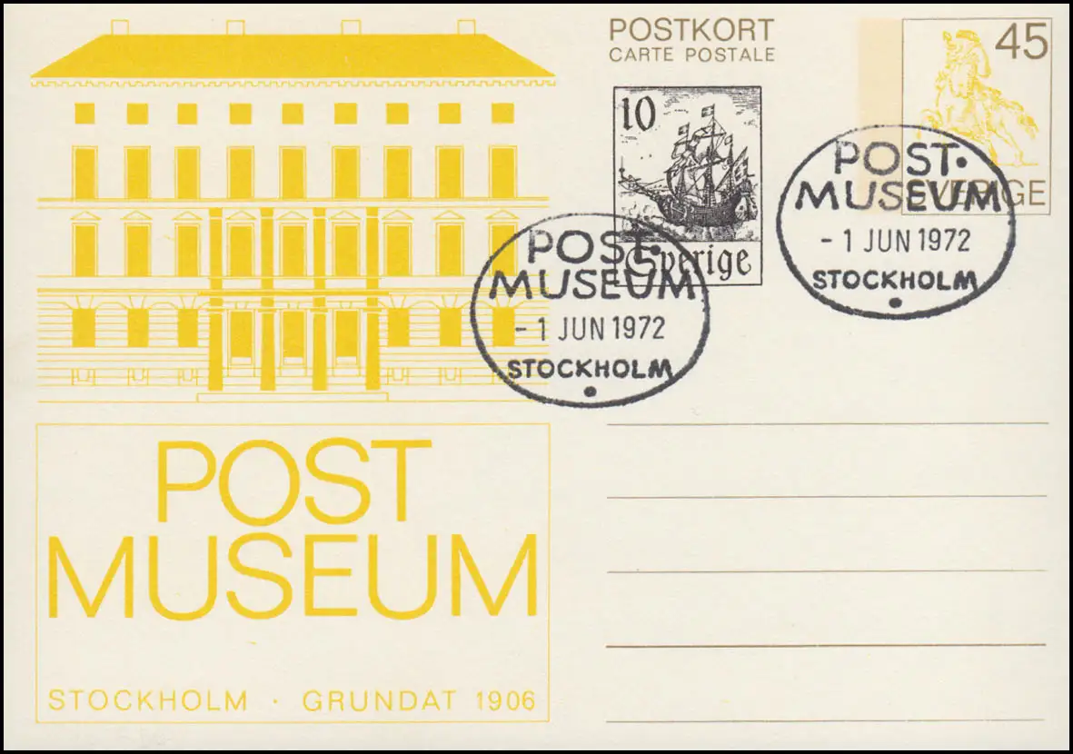 Suède Carte postale P 90 Pokrieger et voilier, FDC Stockholm 1.6.1972
