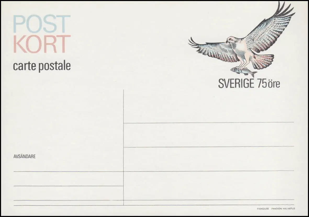 Suède Carte postale P 96 Adler de poisson 75 Öre 1975, ** frais de port