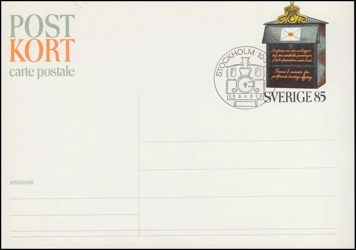 Suède Carte postale P 98 Boîte aux lettres 85 Öre, FDC Stockholm Locomotive 10.03.76