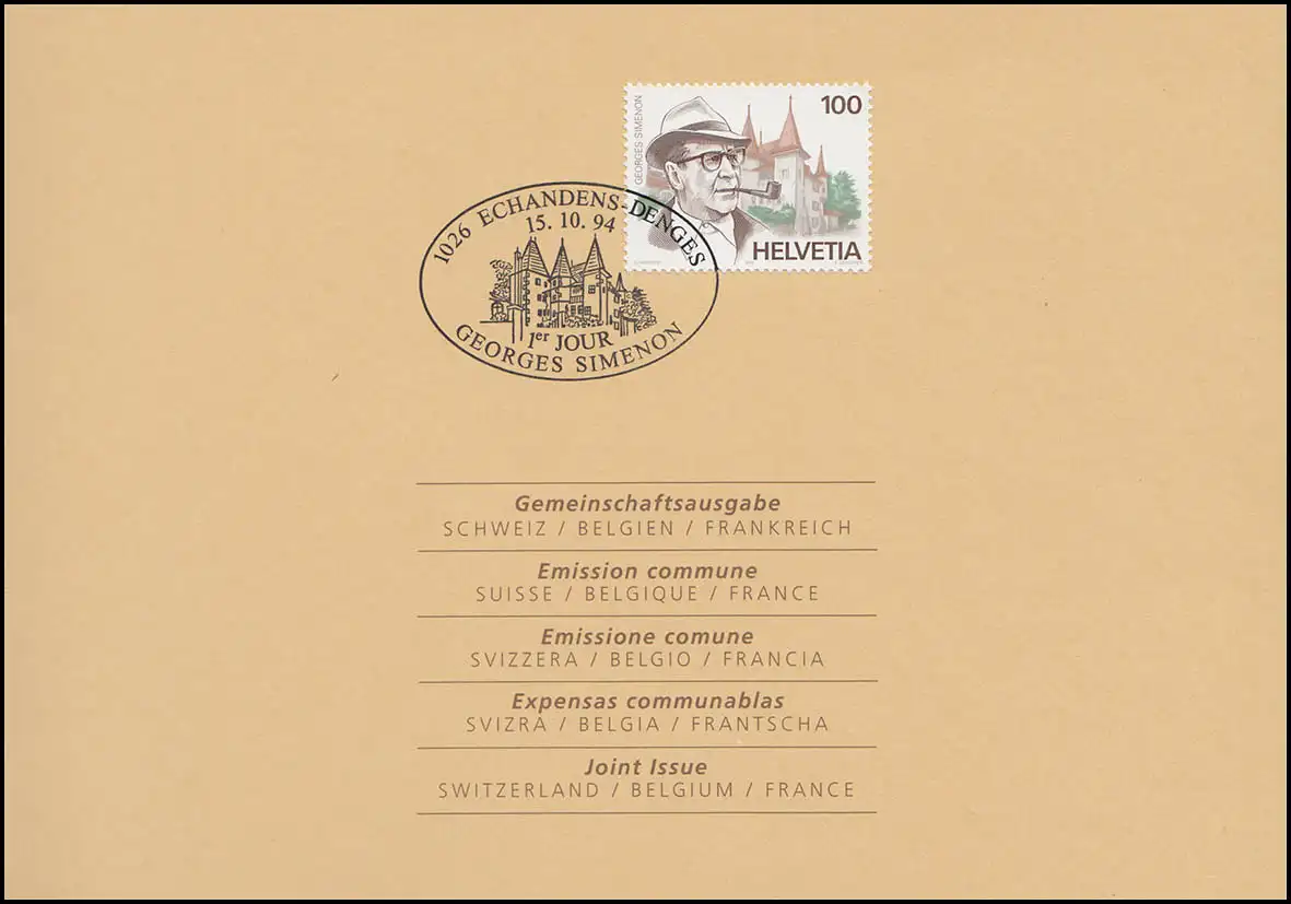 5e anniversaire de la mort de Georges Simenon, écrivain belge Numéro de catalogue: 1994 Examen: original Numéro d'article: 87918199400700