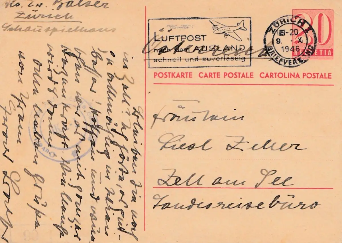 Suisse: 1946: Zurich après Zell am See, Publicité Aéroport