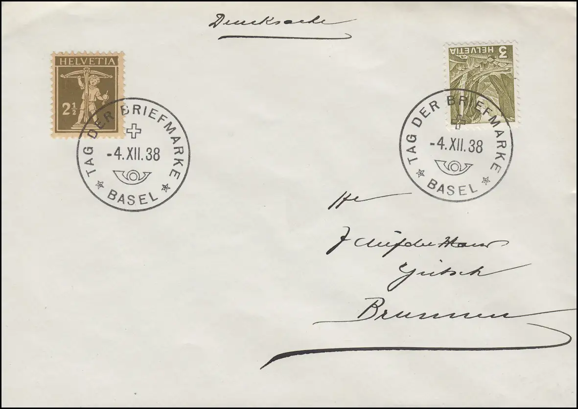 Affaire d'impression après puits avec cachet spécial BÂLE JOUR DE LA BRIefMARKE et de la Posthorn 4.12.1938 Contrôle: original Numéro d 'article: 00000000016407