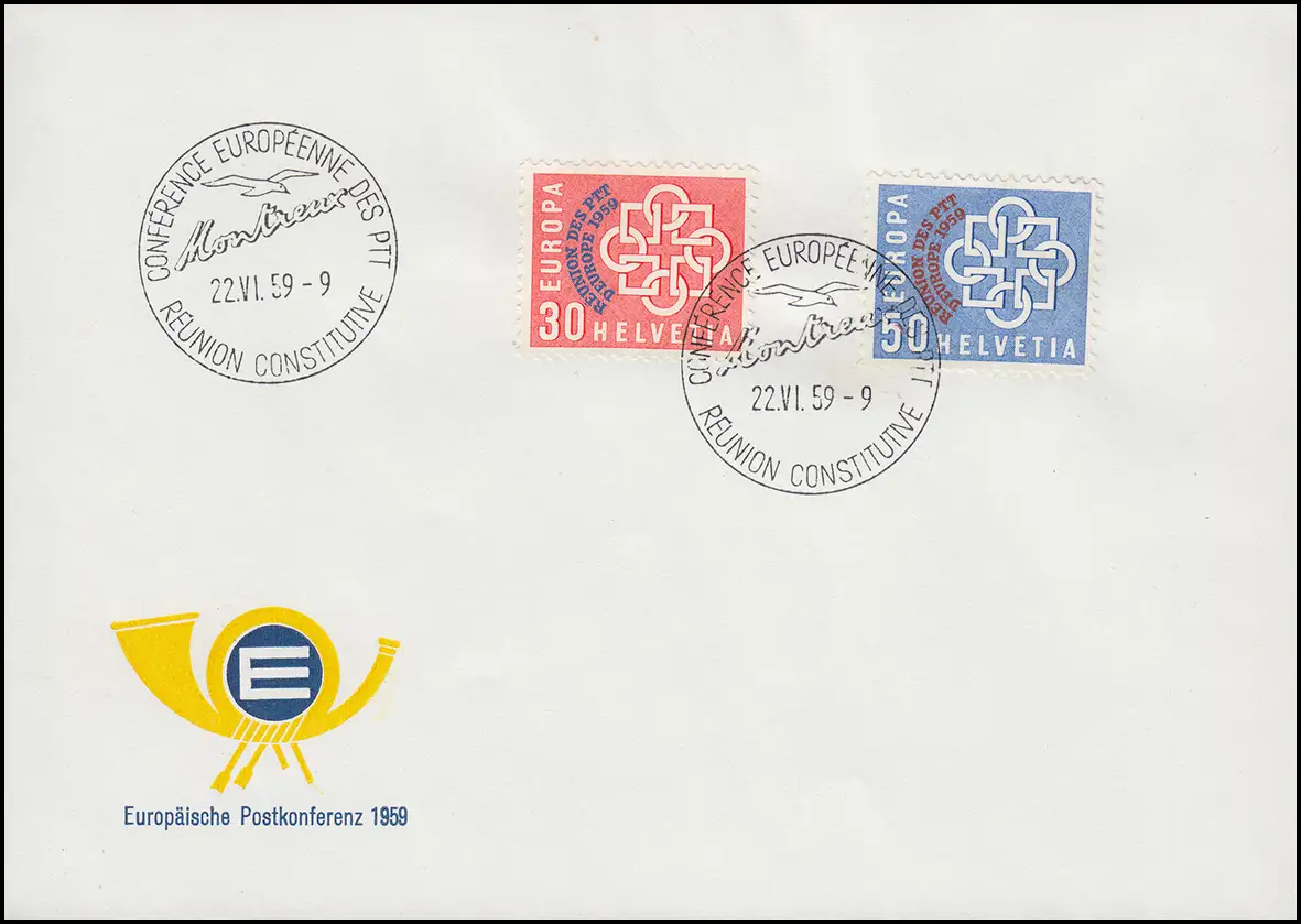 Suisse 681-682 Ensemble de conférence PTT sur les bijoux en blanc-FDC ESSt MONTREUX 22.6.59