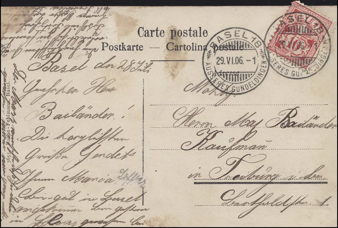 Suisse AK Basel - Partie am Centralbahnplatz, BASEL-GUNDELDINGEN 29.6.1906