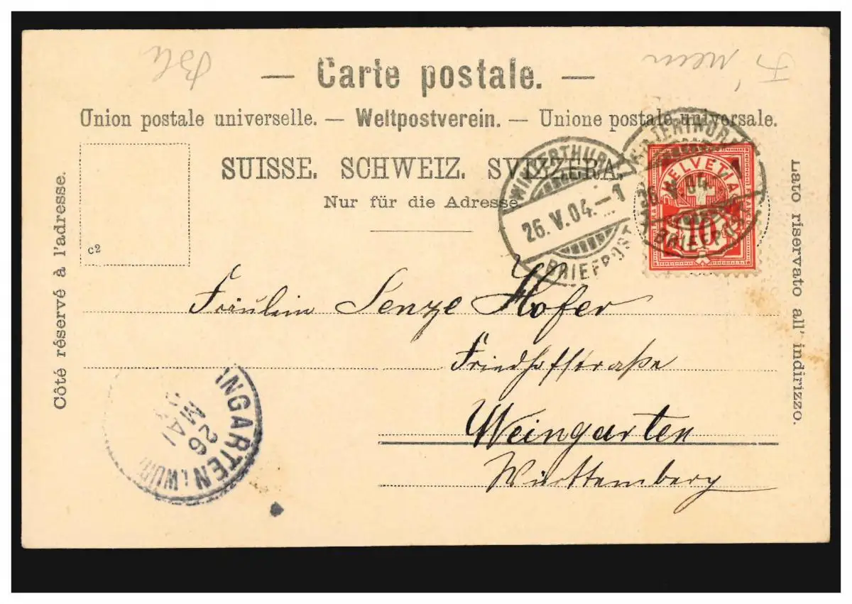 Suisse AK Rapperswil: Le château, WINTERTHUR 26.5.1904 selon WEINGARTEN 26.5.04