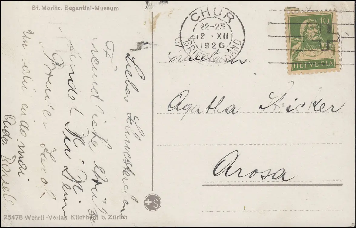 Suisse AK St. Moritz - Musée Sagantini, CHUR 12-12-1026 après Arosa