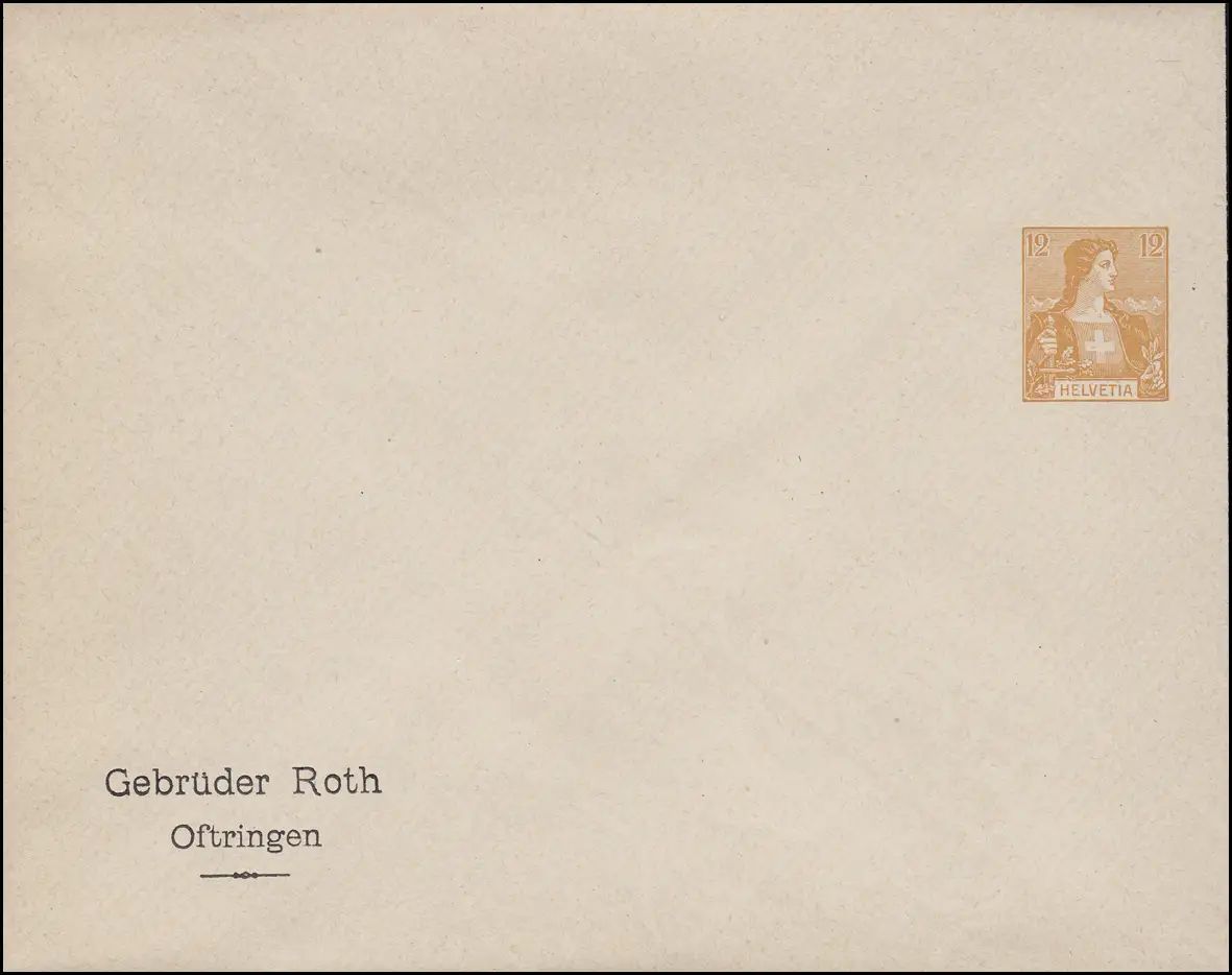 Suisse Affaire entière privée Enveloppe Helvetia 12 C. orange, non utilisé (vers 1910)
