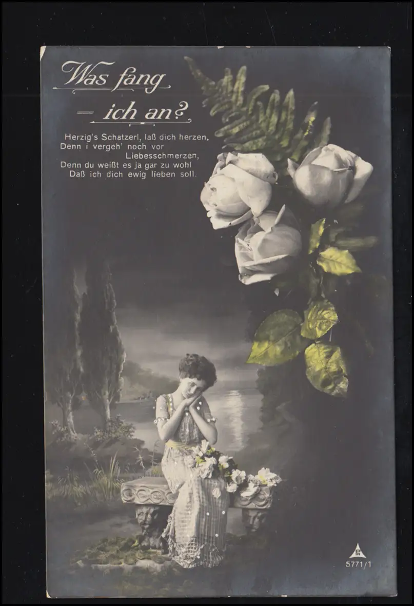 Suisse Amour-AK Douleur d'amour - Femme avec Roses, DONZHAUSEN (THURGAU) 15.2.1916