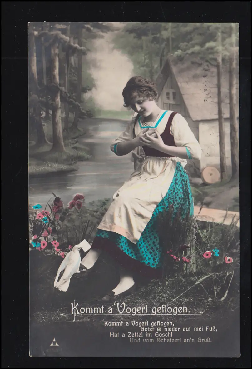 Suisse Amour-AK Salutations d'amour par pigeon-lettre, coloré, couru vers 1915