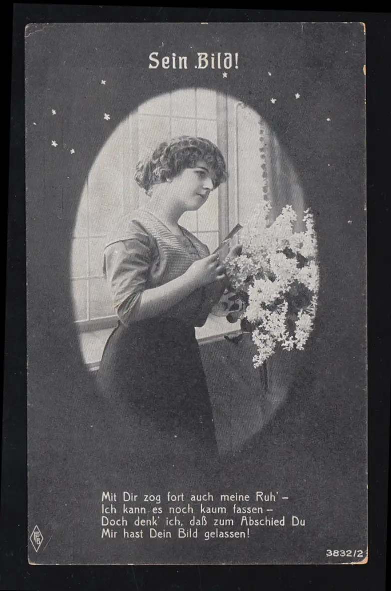 Suisse Amour-AK: Son image! Femme avec image à la fenêtre, Quadruple, RÜTI 3.2.1930