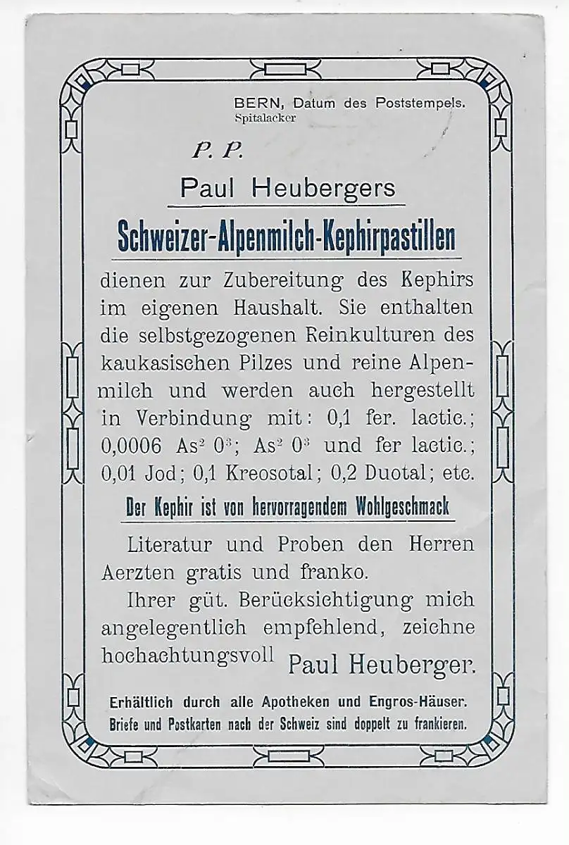 Suisse: Berne 1910 après Bannholz/Marktstedt, Chose d'impression: Lait alpin Pastilles
